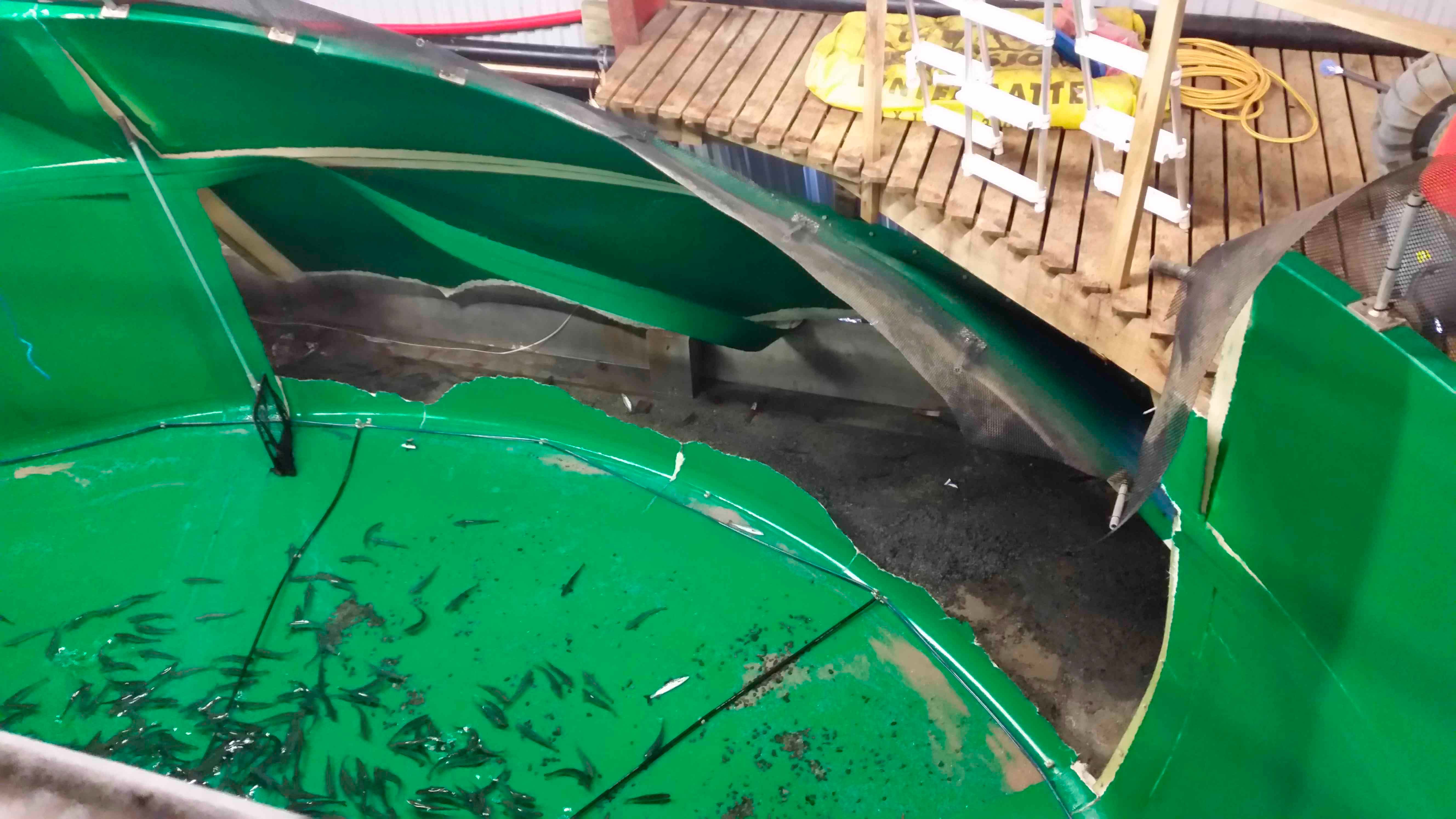 Natt til 2 oktober 2015 revnet plutselig og uten forutgående varsel et kar på et settefiskanlegg.