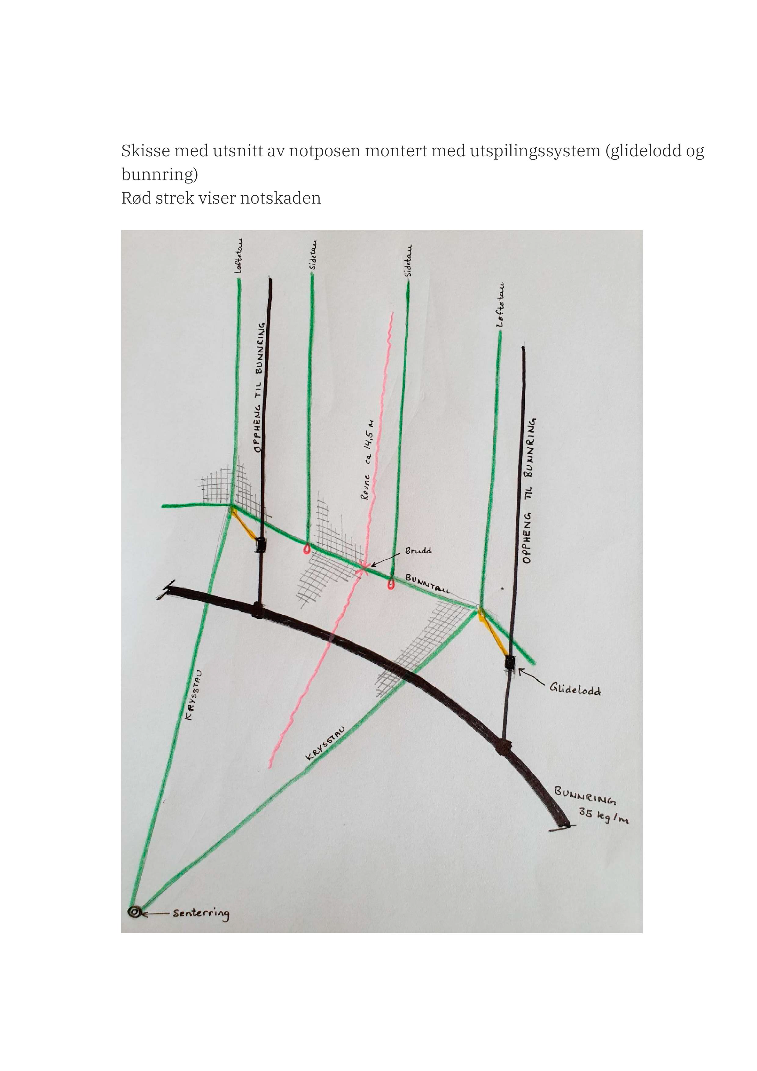 Det var under håndtering av den aktuelle notposen på lørdag at skaden i noten oppstod. Fisken i anlegget ble avluset mekanisk som innebærer at fisken ble pumpet fra merden, gjennom avlusingsenheten for avlusing og videre ut i en tom merd. Flåten med avlusingsenheten var derfor plassert mellom den aktuelle merden og nabomerden. Hele arbeidsprosessen innebar mange deloperasjoner med blant annet heving og senkning av not og loddsystem, trenging av fisken med perleband, samt håndtering av kastenot.